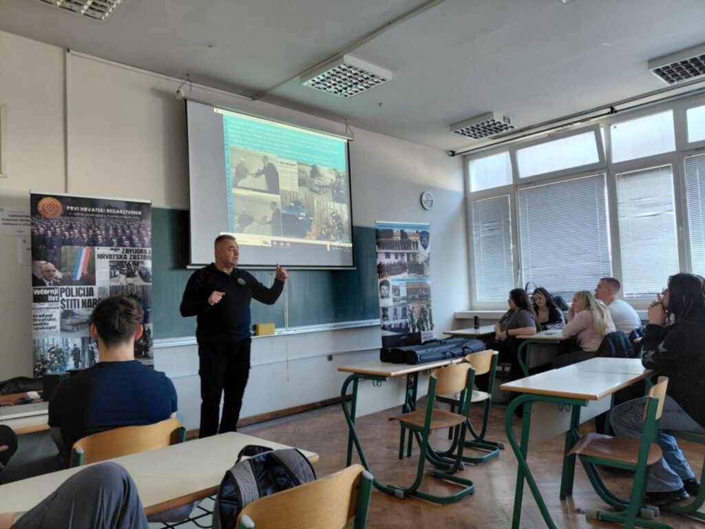 Povodom Dana sjećanja na žrtve Domovinskog rata i Dana sjećanja na žrtvu Vukovara i Škabrnje, našu je školu posjetio predstavnik branitelja, bivši pripadnik specijalne policije i član Udruge Prvi hrvatski redarstvenik, Robert Vulić. On je u četvrtak, 14. studenoga, gostovao u 3. c razredu, gdje je učenicima, uz prezentaciju i zanimljivo predavanje, govorio o Domovinskom ratu, doprinosu Koprivničanaca, oslobođenju koprivničke vojarne, prvim akcijama koje su prethodile ratu i samom ratu te bojištu Zapadne Slavonije, posebno na pakračkom području. Učenici su saznali tko su sve bili branitelji iz našega kraja koji su dali svoj život za slobodnu Hrvatsku, a na kraju su imali priliku postavljati pitanja na koja je gospodin Vulić rado odgovarao. Uskoro nas očekuje još jedno ovakvo gostovanje u 3. h razredu.