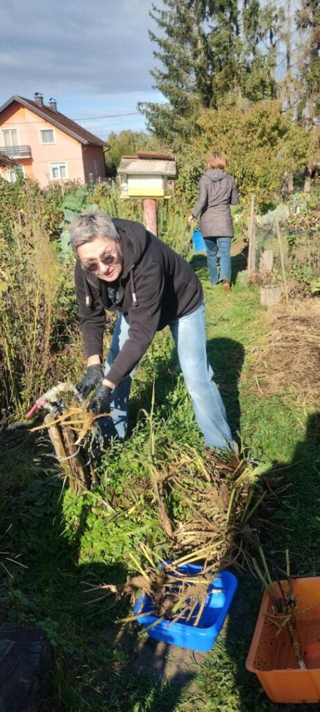 Učenici 4.e s nastavnicama Dijanom Kolarić, Sandrom Maletić i Ines Frančić, novopečenom umirovljenicom, uživali su u jesenskoj žetvi bijeloga sljeza. Učenici 4.g sljez su pripremili za sušenje. Veselimo se novoj žetvi!