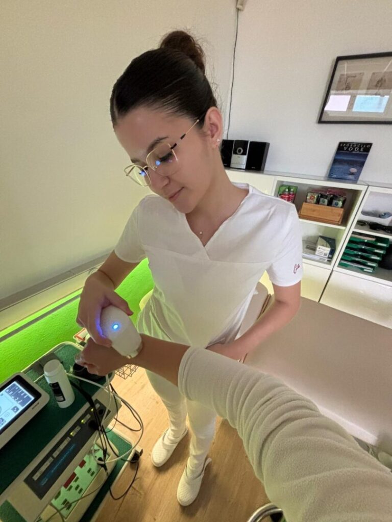 Sara Jurčić redovito provodi pasivne i potpomognute vježbe s pacijentima, upoznala s radom suvremenog kineteka i prvi puta isprobala i aplicirala Tecar terapiju. Također, promatra i uči različite vrste manualne terapije.
