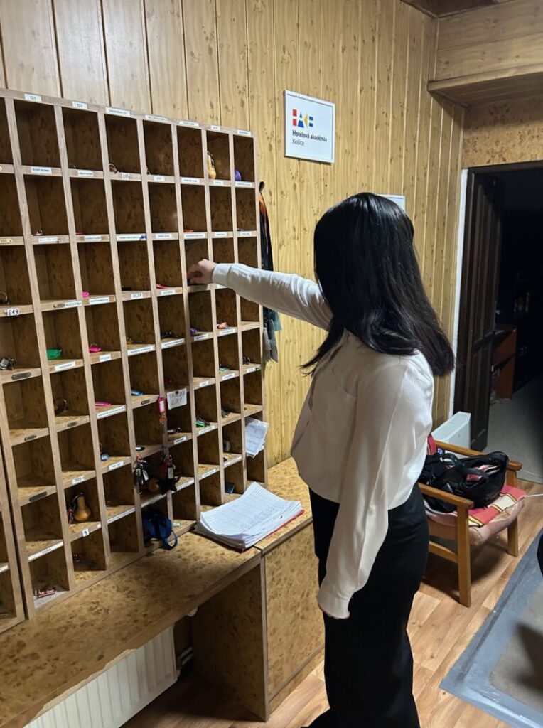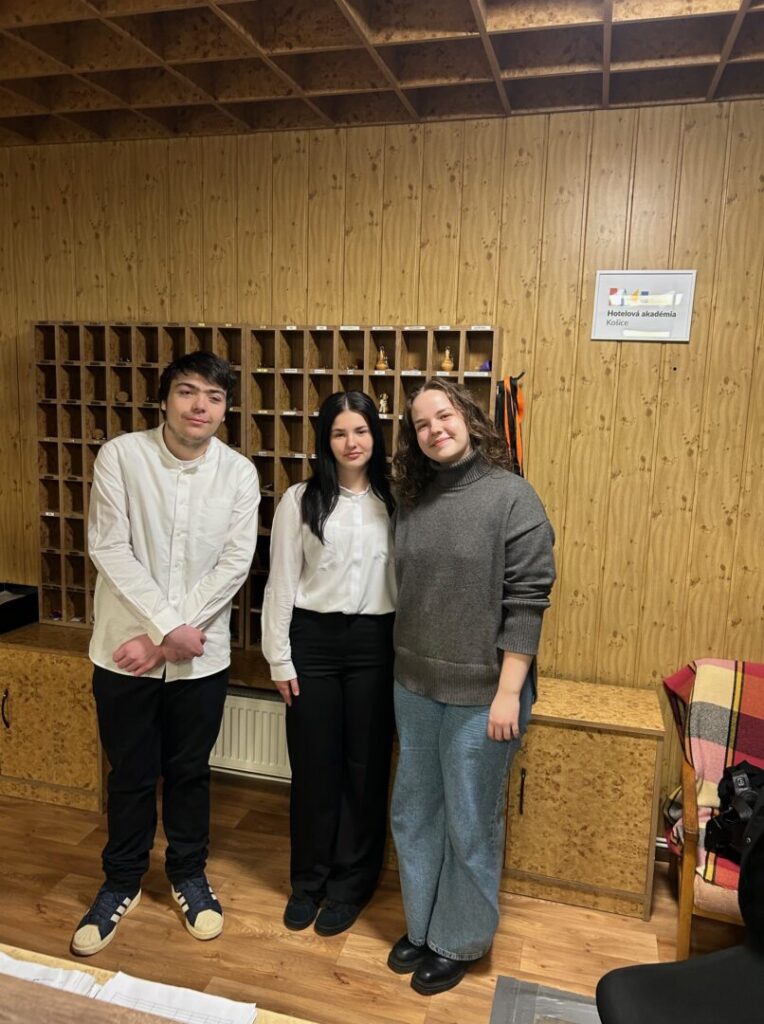 Naši su se učenici hotelijeri odlično snašli u Hotelovoj akademiji (strukovnoj školi u Košicama koja obrazuje hotelijere i ugostiteljska zanimanja i koja unutar sebe ima hotel Garni). U prvih par dana učenici su se upoznali i radili na recepciji u računalnom programu za rezervacije, ispunjavali prijavnice za goste iz stranih zemalja, provodili prijavu i odjavu gostiju. Prisustvovali su nastavnom satu iz Hotelijerstva gdje su ih njihova mentorica i učenici hotelijeri iz Slovačke upoznali sa Slovačkom (kulturom, gastronomijom, gospodarstvom i prirodnim bogatstvima).