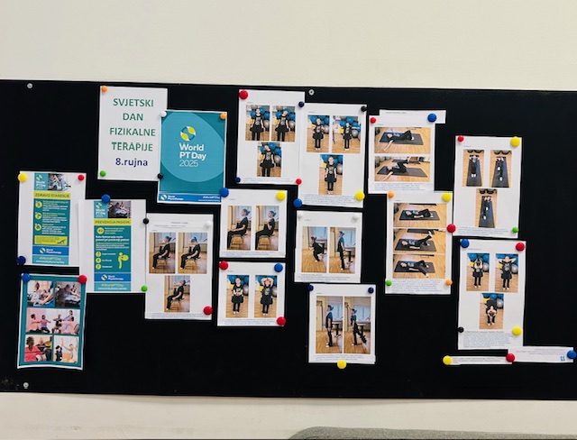 Svjetski dan FIZIKALNE TERAPIJE obilježava se svake godine 8. rujna. Taj dan obilježava se jedinstvo i solidarnost globalne zajednice fizioterapeuta te je to prilika da se prepozna rad koji fizioterapeuti obavljaju za svoje pacijente i zajednicu. Tema 2025. godine je zdravo starenje, s naglaskom na sprječavanju padova i krhkosti. Tim su povodom učenici 3. k razreda pod mentorstvom nastavnice Ane Prentašić u holu Škole izradili edukativni pano, a učenice Dijana Haliagić i Sara Lovreković izradile su i program kineziterapijskih vježbi za sve generacije.
