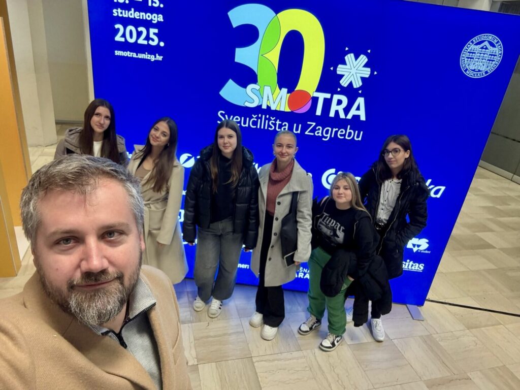 Nakon ZICER-a, naši učenici zajedno s nastavnicom Natalijom Tomac Kelek obišli su Smotru Sveučilišta u Zagrebu, događanje koje se održava od 13. do 15. studenoga 2025. na Zagrebačkom velesajmu.