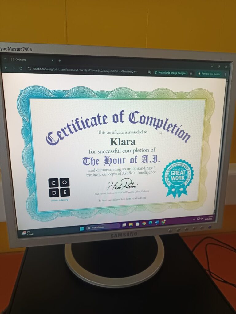 Hour of Code (Sat kodiranja) 2025. u Hrvatskoj i globalno održavao se tjedan dana (8. – 14. prosinca 2025.) s posebnim fokusom na umjetnu inteligenciju (AI), gdje su učenici zajedno sa svojim profesorima sudjelovali u radionicama slažući blokove koda na platformi za uvod u programiranje, dokazujući da je kodiranje dostupno svima, uključujući jednostavne AI zadatke i plesne kodove.