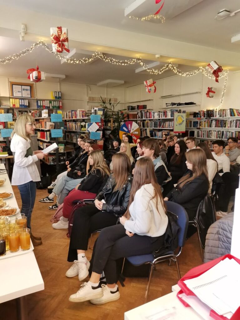 Učenice Karla Lazić (2. a, ekonomist) i Morena Habjan (2.k, fizioterapeutski tehničar) pod mentorstvom nastavnice Maje Blažek izložile su javni govor na temu “Kvari li moć karaktere onih koji su na vlasti” povezujući Calderonovo djelo “Život je san” s korporativnim svijetom, dok je Valentina Šmitlehner (2.k, fizioterapeutski tehničar) pročitala dvije pjesme, zaključivši poezijom sat učeničkih ostvaraja na materinskom jeziku.