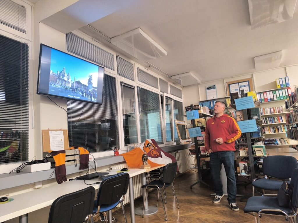 Prof. geografije Vedran Šikić održao je predavanje o Rimu kojim je obuhvatio sve najpoznatije gradske znamenitosti, ali i mnoge one koje su manje poznate i pomalo skrivene. Prošli smo kroz antiku, kršćanske relikvije i brojne crkve, barokne trgove i fontane, muzeje, slikovite gradske četvrti kao što su Trastevere i Garbatella, gastronomsku ponudu te neizostavni nogomet i utakmice AS Rome na Stadio Olimpico.