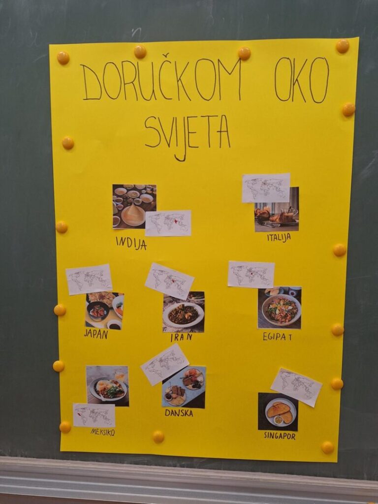 U tjednu školskog doručka su učenice 2. g razreda, zanimanja tehničar nutricionist, posjetile učenike 4. a i 4. d razreda OŠ „Braće Radić“, u pratnji nastavnice Željke Gabaj. U skladu s ovogodišnjom temom Tjedna školskog doručka – „Doručkom oko svijeta“ koja poučava učenike o važnosti raznolike prehrane, istražujući doručke diljem svijeta te ističući važnost doručka kao prvog jutarnjeg obroka koji nam osigurava energiju za čitav dan, na satu druženja je stavljen naglasak upravo na to.