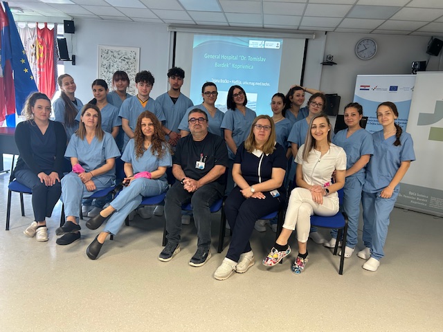 Za učenike i nastavnike iz područja zdravstva (sestrinstvo) organizirali smo posjet bolnici, uz stručno vodstvo glavne sestre bolnice Tajane Bračko Hadžija, rad na odjelu Nefrologije, Vaskularne kirurgije i Kardiologije u OB Dr. T. Bardek Koprivnica (uz pomoć Željke Galešić, Tamare Mudrinić, Tomislava Lončara, Petre Šimunić i Damjana Abou Aldana), posjet i radionicu u Udruzi “Latice” i posjet DV Tratinčica (uz pomoć Marije Križić) te prisustvovanje nastavi i radionicama u školi. Uvodnu “ice breaker” radionicu održala je Ana Prentašić, pedagoginja Maja Maričić održala je zanimljivu radionicu uz kviz i memory puzzle, kojom su učenici usporedili sličnosti i razlike između Hrvatske i Grčke (jezik, kultura, hrana, sport), psihologinja Ida Šipek održala je radionicu o velikih 5 tipova ličnosti, a profesorica Emilija Šanta Ištvanović u laboratoriju škole radionicu izrade prirodne kozmetike (balzami, kreme i mirisna ulja koje su učenici i nastavnici nakon radionice dobili na poklon).