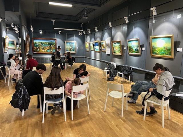Za učenike i nastavnicu iz područja primijenjene umjetnosti organizirali smo radionice u Galeriji “Mio Kovačić” pod vodstvom više kustosice Maše Zamljačanec, posjet Sveučilištu Sjever- Odsjek za medijski dizajn-uz stručno vodstvo njegova pročelnika Luke Borčića i posjet AK Galeriji uz stručno vodstvo direktorice Tanje Špoljar i razgovor sa umjetnicima koje smo tamo zatekli u njihovom kreativnom trenutku.