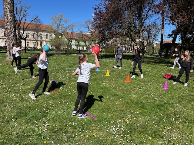 Učenici fizioterapeuti sudionici Erasmus+ mobilnosti u Sloveniji i Španjolskoj naučena su znanja i vještine diseminirali putem aktivne radionice (“vježbaonice”) sa lokalnom zajednicom (suradnja sa djecom i odgojiteljicama iz DV Tratinčica (skupina Smarties) te učiteljicama i djecom iz OŠ Ðuro Erster, 3. i 4.razred). Za djecu su osmislili zanimljive natjecateljske igre i proljetni kružni trening koji su locirali u gradski park u Koprivnici- na svježi zrak i zeleno okruženje.