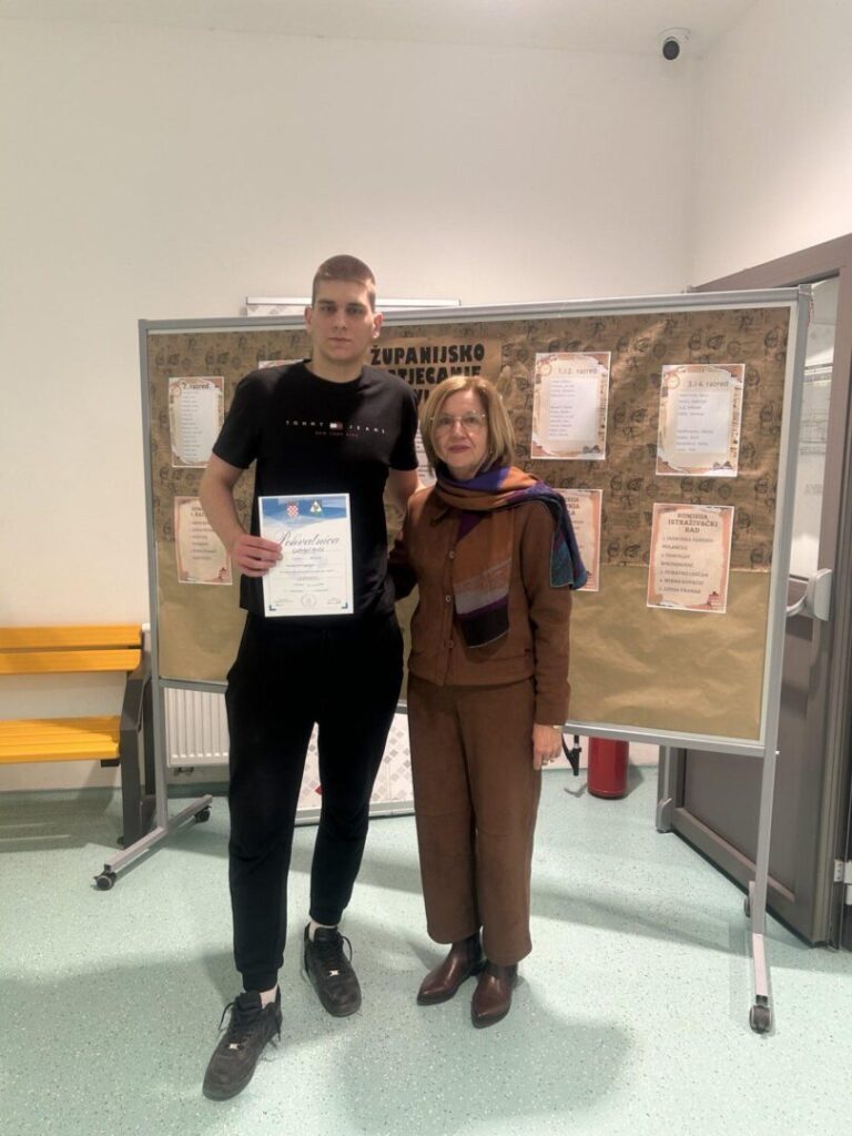 Učenik Gabrijel Božić iz 3. k ostvario je 4. mjesto uz mentorstvo prof. Zvjezdane Orober.